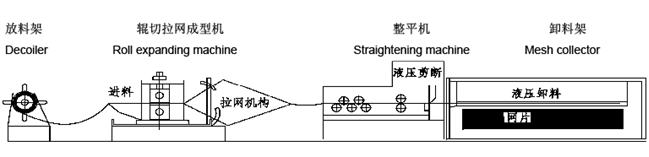Self furring lath production line is used to produce the self furring lath which is applied to plaster and reinforcing the wall, the production line contains de-coiler, expanded main machine, roller profiling machine with hydraulic shearer and collecting table