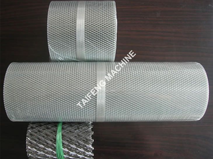 The expanded metal mesh machine is composed of main machine frame, driving system, crankshaft, upper blade frame(movable frame), down blade frame, feeding device, material moving device, lubrication system and electric control part.