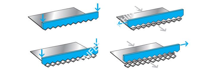 2. Each machine is fitted with a unique "Knife", dedicated to a particular pattern. New patterns and knives can be created in-house for specific applications.