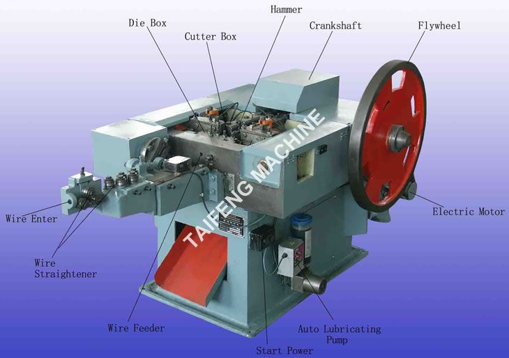 Features:This Z94 series, new type C nail-making machines adopt plunger and oil pipe lubricating structure so as to ensure the features such as high speed, low noise and less impact. Especially, it can make the high quality of asphalt felt nails and other special nail used for high speed coil nail welder and coil nailers.