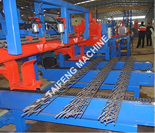The truss girder welding machine contains Line wire straightening unit, Line wire accumulator, inclined beading bending & moulding structure, Welding system, Truss bridge feeding system, Truss bridge cutting, material receiving system.