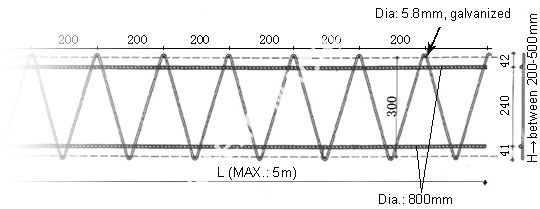 | Bottom wire diameter | 5 - 14 [mm] | |