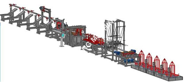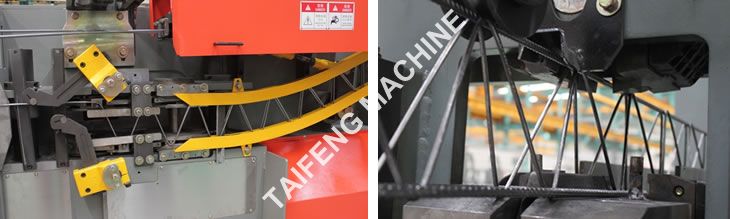 3D trussgirder welding machine is comprised of reel rebar pay-off, rebar straightening,truss rebar bending, welding, cutting and stacking sections.